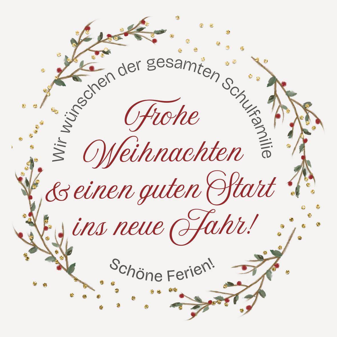 Der ganzen Schulfamilie wünschen wir ein frohes Weihnachtsfest sowie einen guten und gesunden Start ins neue Jahr.