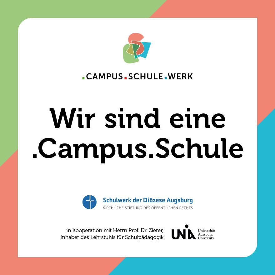 Campus.Schule.Werk ist eine Kooperation des Schulwerks der Diözese Augsburg und dem Lehrstuhl für Schulpädagogik der Universität Augsburg, die den Studierenden eine effektive Kombination aus theoretischem Wissen und praktischer Erfahrung bieten möchte.